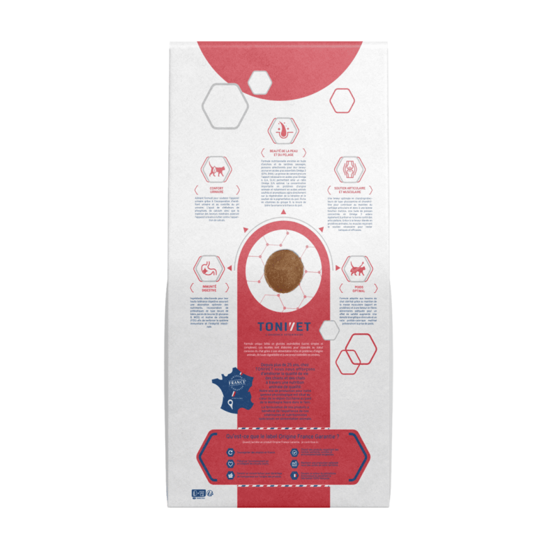 TONIVET CHAT ADULTE STÉRILISÉ CANARD apporte tous les nutriments nécessaires au chat adulte grâce à un apport énergétique - protéique optimal et possède une taille adaptée à leur morphologie. Il contribue à une digestion optimale et aide au bon équilibre de la flore intestinale. Il favorisera le soutien articulaire (glucosamine, chondroïtine, oméga 3), le pelage brillant (acides aminés soufrés) et le confort urinaire (artichaut, chélateurs, apport minéral contrôlé). Répond aux besoins du chat stérilisé.